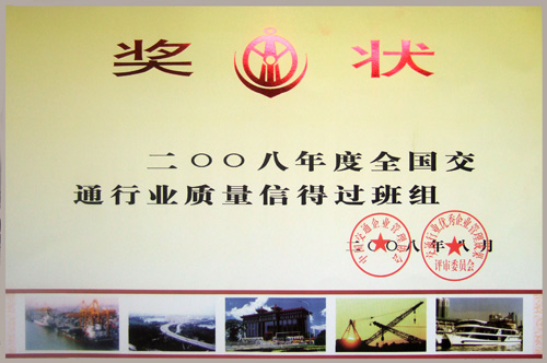 > 2008年度全國(guó)交通行業(yè)質(zhì)量信得過班組獎(jiǎng)狀