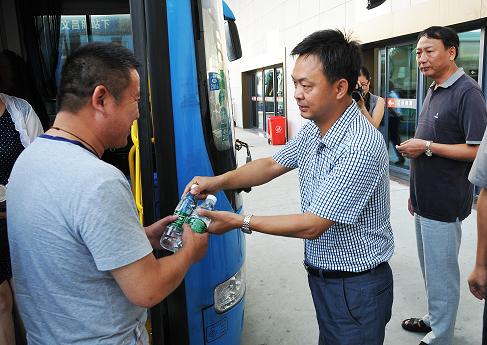 在西部客運(yùn)樞紐停車場,凌董事長與職工們親切交談,詢問他們的工作狀態(tài)和身體狀況,并送上礦泉水和八寶粥。董事長熱忱表示,企業(yè)發(fā)展離不開一線工作人員的辛勤勞動,連續(xù)的高溫天氣給道路運(yùn)輸增加了很大壓力,一線職工戰(zhàn)高溫、斗酷暑,非常辛苦,為企業(yè)做出了很大貢獻(xiàn)。他希望廣大職工繼續(xù)發(fā)揚(yáng)艱苦奮斗的精神,確保車輛安全出行和準(zhǔn)點發(fā)車,確保旅客平安往返。