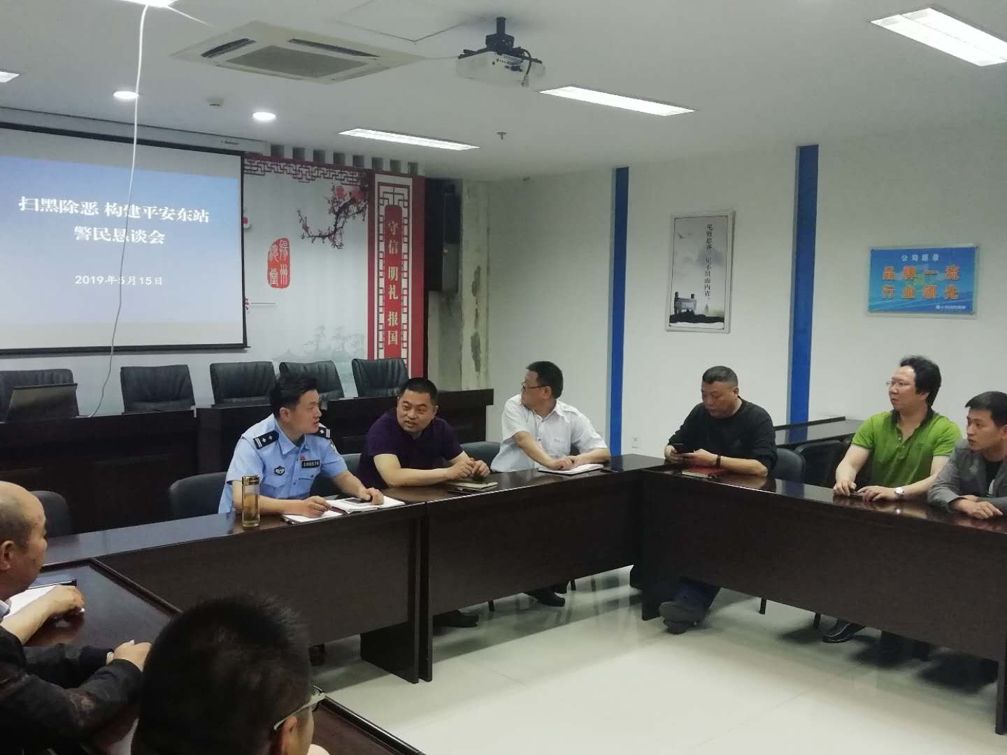 2019年5月15日上午9點(diǎn)30分,東站召開(kāi)掃黑除惡專(zhuān)題工作動(dòng)員大會(huì),東站支部書(shū)記、管理人員、班組長(zhǎng)和超市及賓館等商戶參加了會(huì)議,會(huì)議由揚(yáng)州市公安局公交分局東站派出所所長(zhǎng)李方民主持。