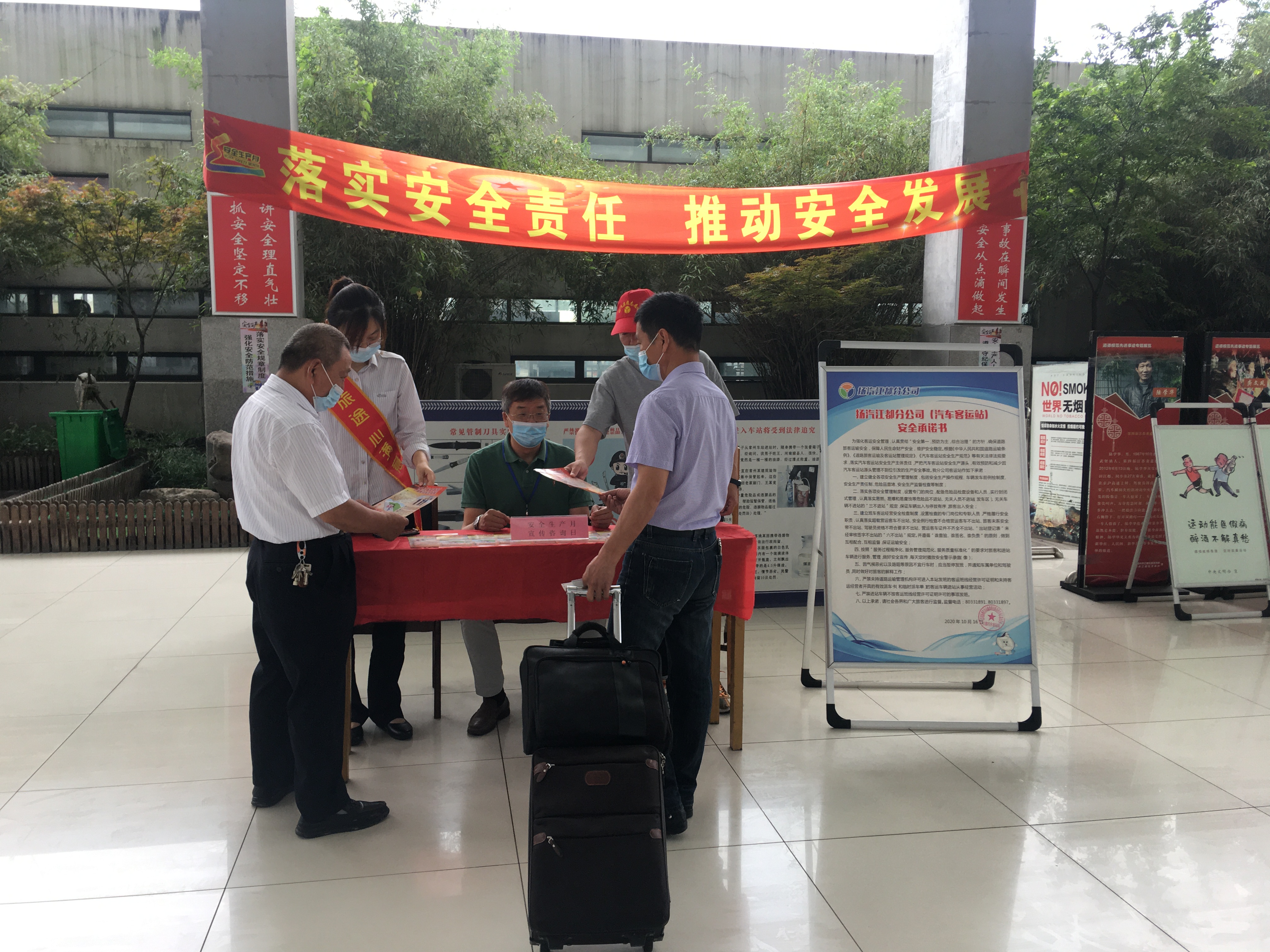 6月17日,集團所屬汽車客運站在確保疫情防控安全的前提下,在車站大廳內設立了安全生產宣傳服務臺,各部門、各單位由分管安全領導帶隊,通過安全生產月咨詢日活動,集中向一線職工、來往旅客們發(fā)放安全生產法律法規(guī)宣傳資料,宣傳黨和國家安全生產方針政策,傳遞安全理念,全力營造關注安全、關愛生命的濃厚氛圍。
