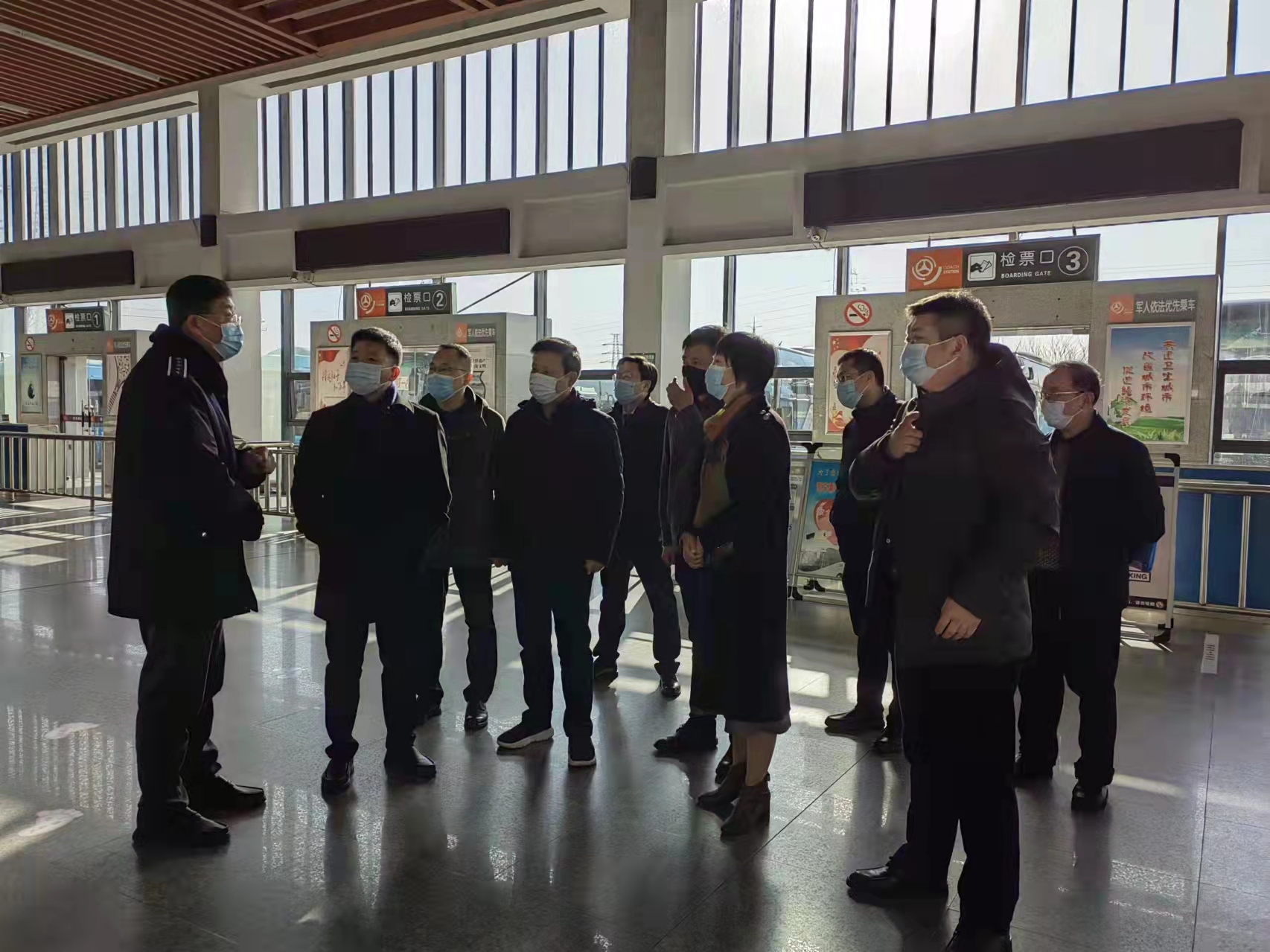 朱定金強調(diào),春節(jié)假期接近尾聲,返程高峰即將到來,車站旅客人數(shù)將有所增加,值班值守的人員要繼續(xù)堅守崗位,做好個人防護,同時注意防寒防暖。車站要扎實做好春節(jié)各項安全防范工作,牢固樹立客運站的安全發(fā)展理念,疫情防控工作時刻不能松懈,嚴格按照規(guī)定對場站、車輛進行通風消毒,嚴查旅客健康碼和體溫檢測,提醒旅客全程規(guī)范佩戴口站、落實好“一米線”等要求。常態(tài)化疫情防控下的春運,車站服務不能打折扣,用心守護好江都的大門,讓旅客出行變的更有溫度。