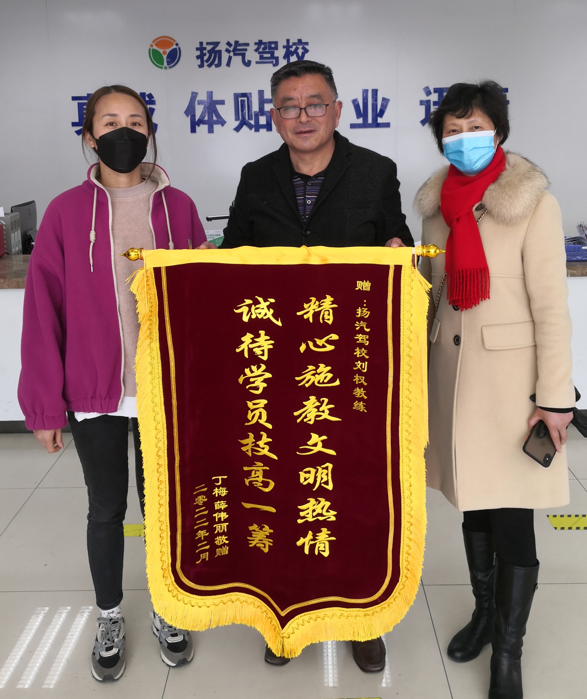 3月1日下午,揚汽駕校又收到一份禮物,剛剛順利領(lǐng)取駕駛證的學員丁梅、薛偉麗,將“精心施教、文明熱情、誠待學員、技高一籌”的錦旗送至揚汽駕校招生大廳,對教練劉權(quán)學車期間的辛勤付出表達深深的謝意以及對揚汽駕校的肯定。