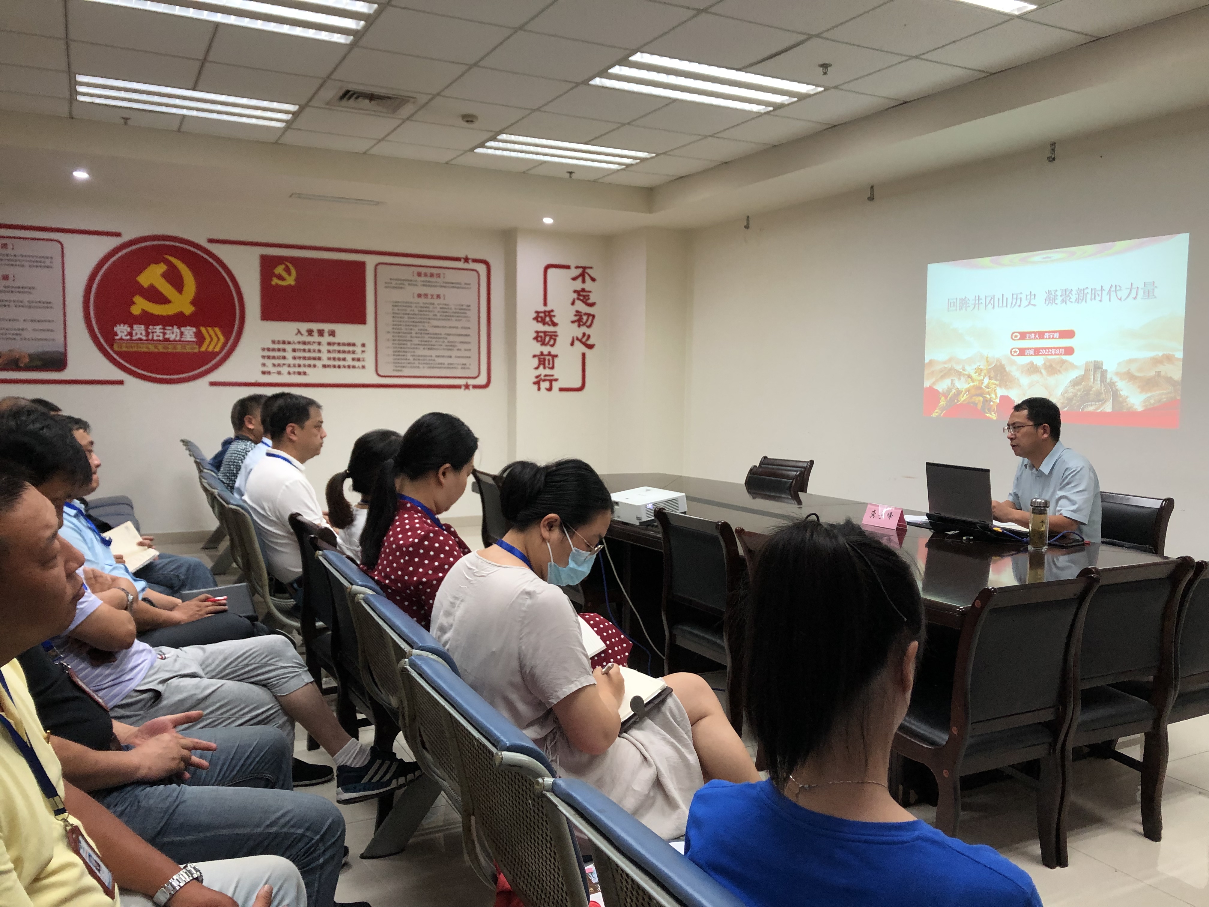 活動中,龔宇峰與全體黨員共同重溫了入黨誓詞,以《回眸井岡山歷史 凝聚新時代力量》為題,從井岡山的歷史、內涵和時代價值等方面帶給大家一堂生動的主題黨課。在場黨員同志們對“第一個農(nóng)村革命根據(jù)地建立”、“ 三灣改編”、“星星之火可以燎原”等黨史有了更深入的理解。