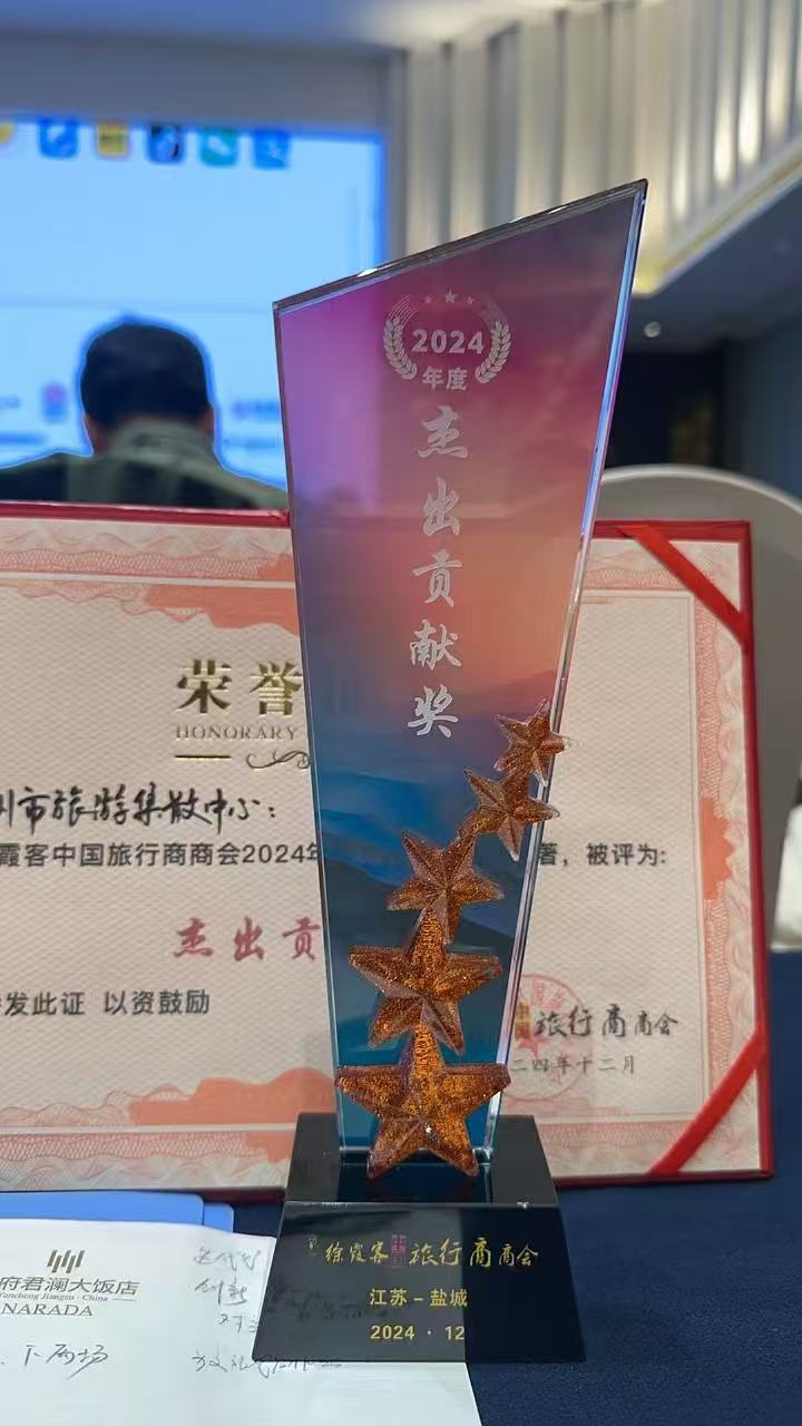 揚(yáng)州市旅游集散中心榮獲徐霞客中國旅行商商會(huì)“2024年度杰出貢獻(xiàn)獎(jiǎng)”三等獎(jiǎng)